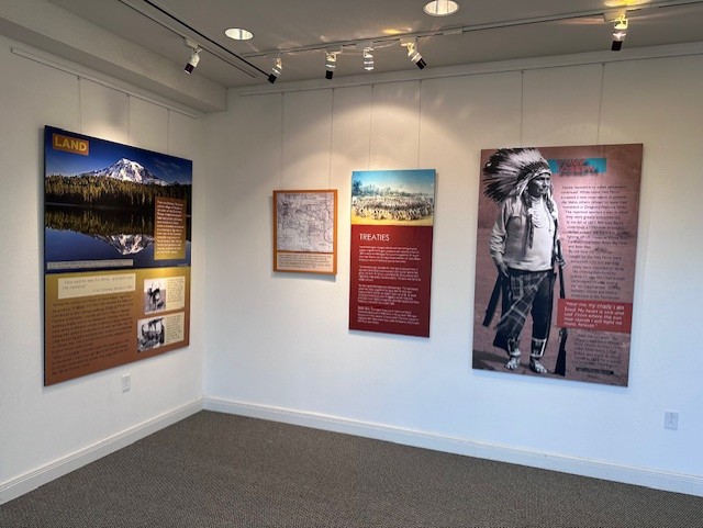 We’re Still Here: The Resilience of Washington Tribes presents issues, challenges, and successes that Indigenous people have experienced through the years in Washington State. The exhibit highlights the conflicts over land, identity, sovereignty, fish, and preserving Native culture. The exhibit also shows how tribes are successfully passing on their culture to future generations.