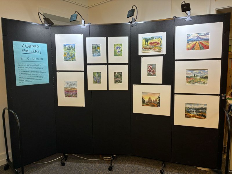 The Second Story Gallery wants to expand opportunities for artists and community members to display work and has added an additional space in the Library called Corner Gallery. It is a display wall located near the Library's DVD section on the first floor of the Library. This area will host the occasional small exhibits throughout the year.