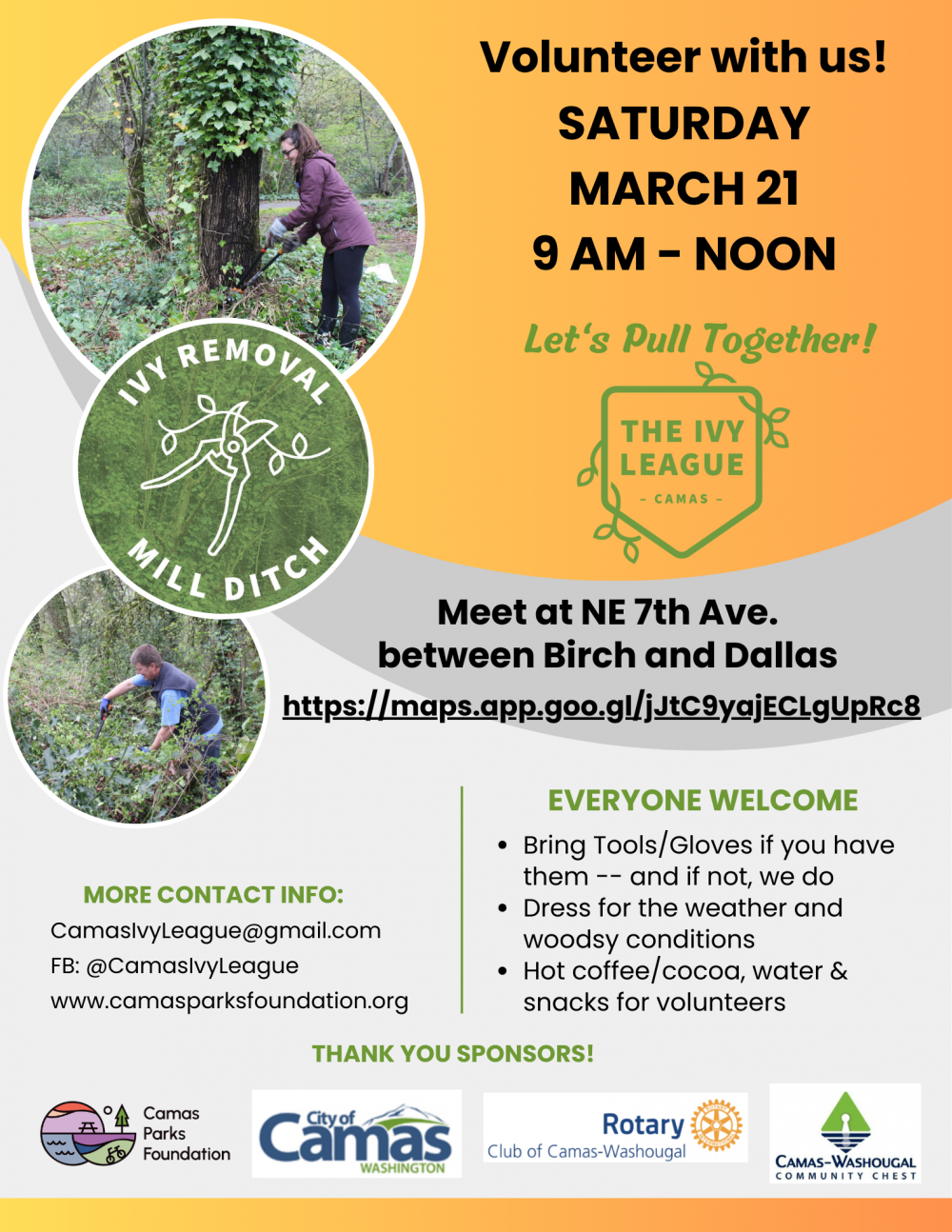 Additional Upcoming events -- Camas Ivy League & (invasive species removal partners)