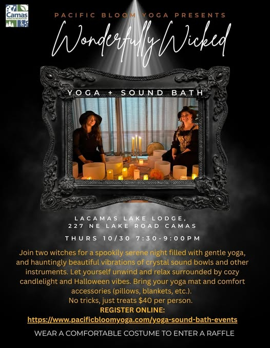 Join us for a spookily serene night filled with gentle yoga, and hauntingly beautiful vibrations of crystal sound bowls and other instruments. Let yourself unwind and relax surrounded by cozy candlelight and Halloween vibes. Bring your yoga mat and comfort accessories (pillows, blankets, etc.).